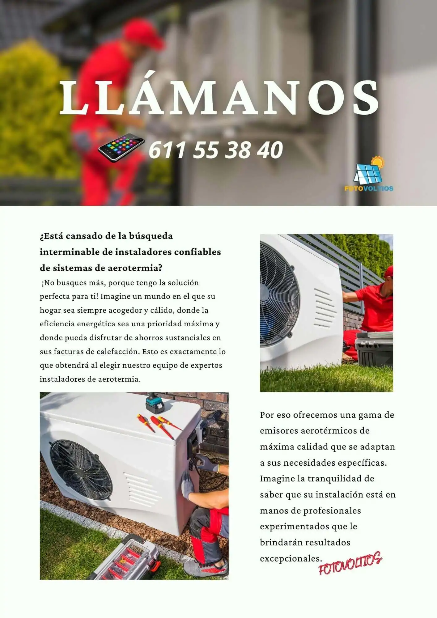 Si andas buscando a los mejores Instaladores de aerotermia en Madrid, en Fotovoltios Aerotermia y Autoconsumo somos una empresa dedicada a la Instalación de Aerotermia y placas solares para autoconsumo solar, desde hace muchos años, con la experiencia para montar distintas marcas de aerotermia y puesta en marcha.